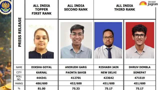 ICAI CA Jan Final Exam Topper List 2026: The results were released this afternoon, and within minutes, social media was flooded with congratulatory messages. Diksha Goyal from Karnal emerged as the All India Rank 1 holder, scoring an impressive 486 out of 600 marks. Her disciplined preparation strategy, early morning study routine, and continuous mock test practice played a crucial role in her success.